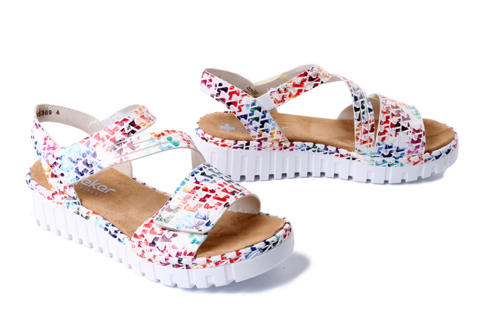 Model Rieker v1364-90 to sandały damskie. Dzięki kolorowej kolorystyce oraz oryginalnemu wzornictwu buty będą pasowały do wielu letnich stylizacji.